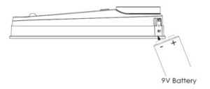 9V Battery Backup: If the lock’s batteries are dead, use a 9V battery. Hold the battery against the connectors located on the bottom of the exterior side of the lock to provide temporary power. Once powered, enter your door code to unlock the door.